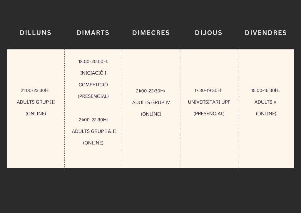 Benvolguts socis, La setmana que ve comença la nova temporada i les classes al nostre club. Aquí teniu la informació actualitzada: 📅 Classes Setmanals: Iniciació…